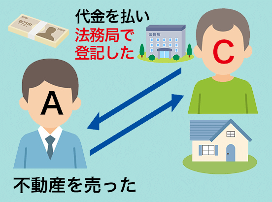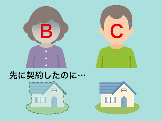 ところがAは悪い人でした。何も知らないCさんにもこの話を持ちかけていたのです。つまりAは同じ不動産をBさんにもCさんにも売ってやるといって代金を受け取っていたのです。そしてCさんは登記をしていました。