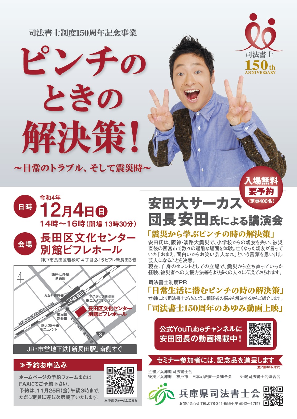 【事業告知】司法書士制度150周年記念事業 ピンチのときの解決策!~日常のトラブル、そして震災時~