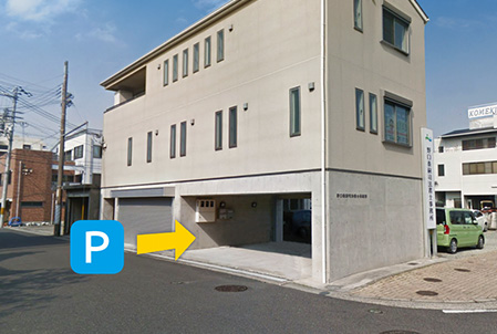 お車でお越しいただく場合は、事務所1階が駐車場となっております。